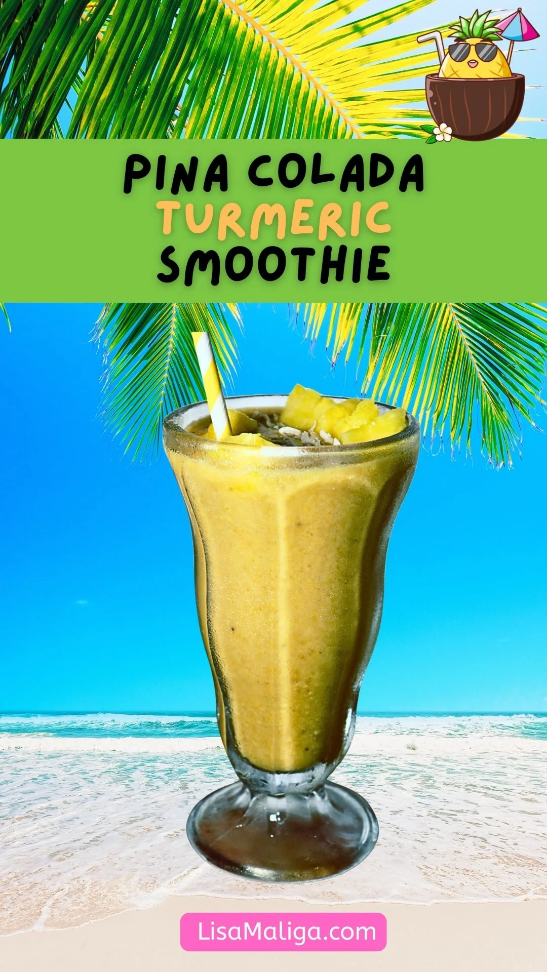 ✨What better way to cool off than by drinking a healthy smoothie? This Pina Colada Turmeric Smoothie is nourishing and the sunshiny color is brought to you by turmeric — only a small amount is needed! Benefits from this spice include anti-inflammatory effects which may reduce inflammation and arthritis-related pain and swelling. The key word is may as it depends on how often you take it and the quality of the turmeric. If in doubt, spend a tiny bit more for your organic foods, herbs and spices.