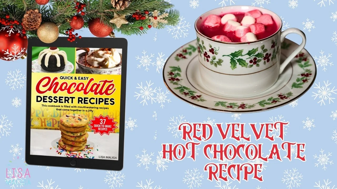 For Christmas, Valentine’s Day, or any special occasion, this vibrant red white velvet hot chocolate is noticeable. This is the caffeine-free version for those of you who want to enjoy a late night beverage. This holiday season, share this simple yet indulgent recipe with your family and friends. It’s from my latest dessert cookbook QUICK & EASY CHOCOLATE DESSERT RECIPES. Scroll down to watch the video!